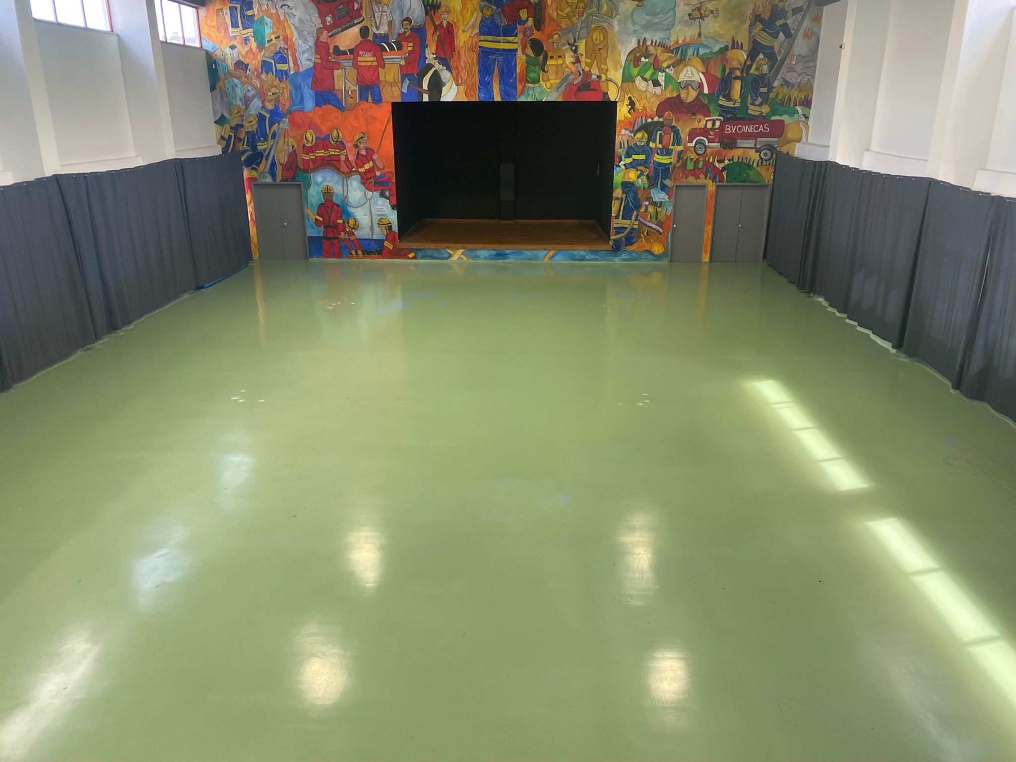 É constituído por uma área útil de 330m2, com 15 metros de largura, 22 metros de cumprimento e 7 metros de altura, com uma lotação de 300 pessoas, dispondo também de bancadas com lotação para 100 pessoas e um palco com 6 metros de frente e 4,5 metros de profundidade, podendo ser complementado com vários estrados.
